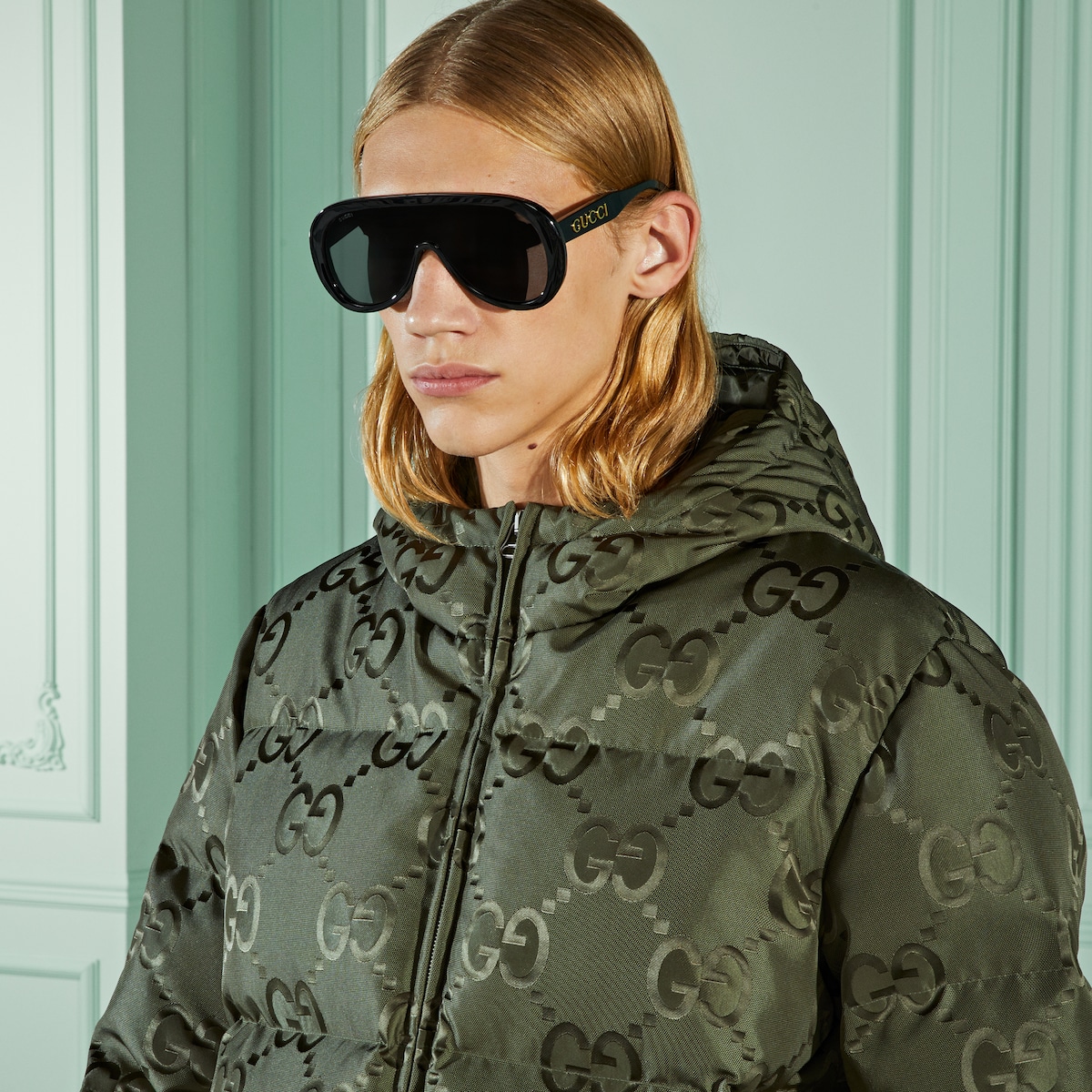 Instantly recognisable emblems of the brand, logos enrich designs in new and unexpected ways. Behind every logo lies the tradition and value of the House, an everlasting medium one can wear again and again. Following the idea of constant change and experimentation, different iterations of the logo have been presented each collection. The jumbo GG, a new, maximalist version of the historic monogram, animates a selection of ready-to-wear and accessories like this down padded canvas jacket.