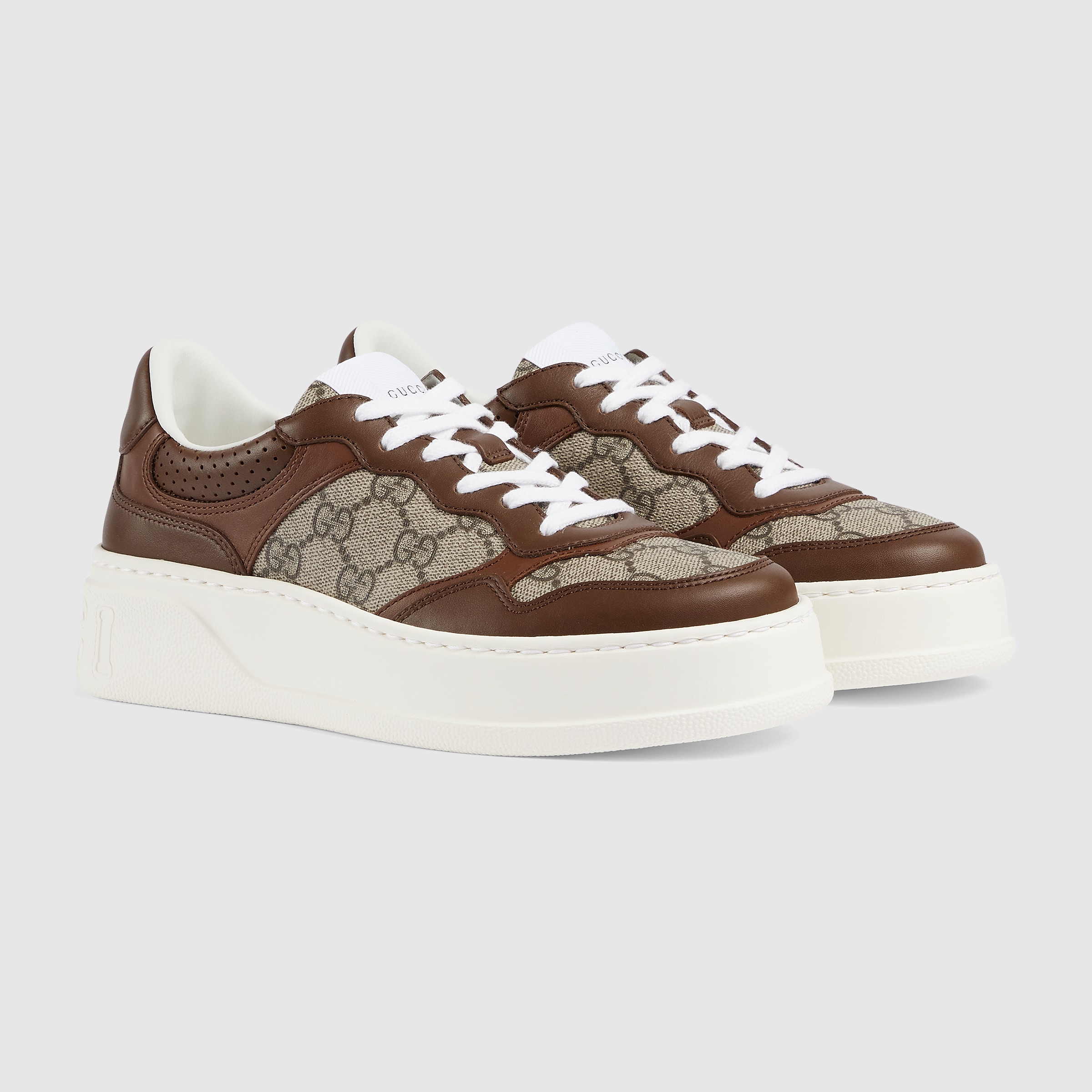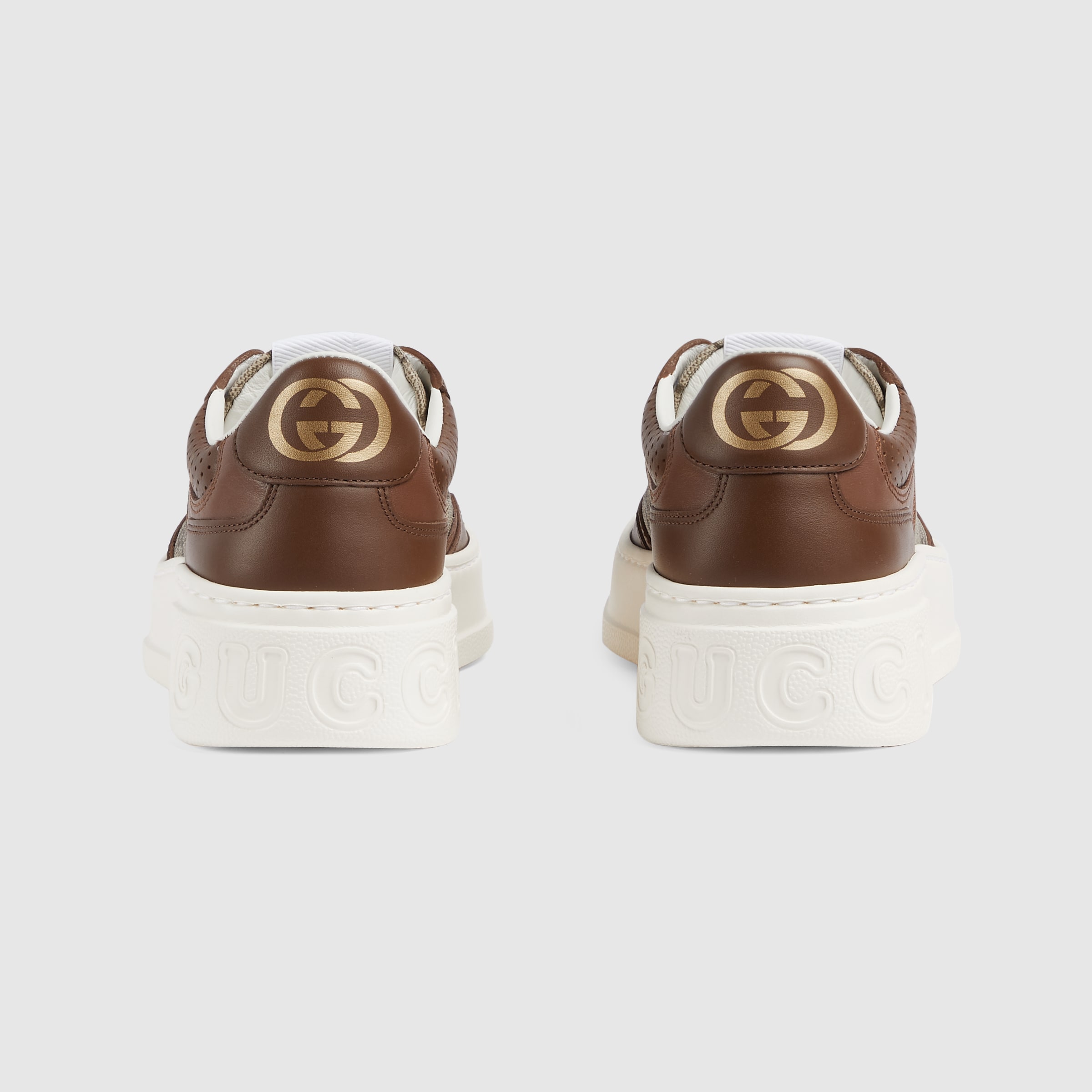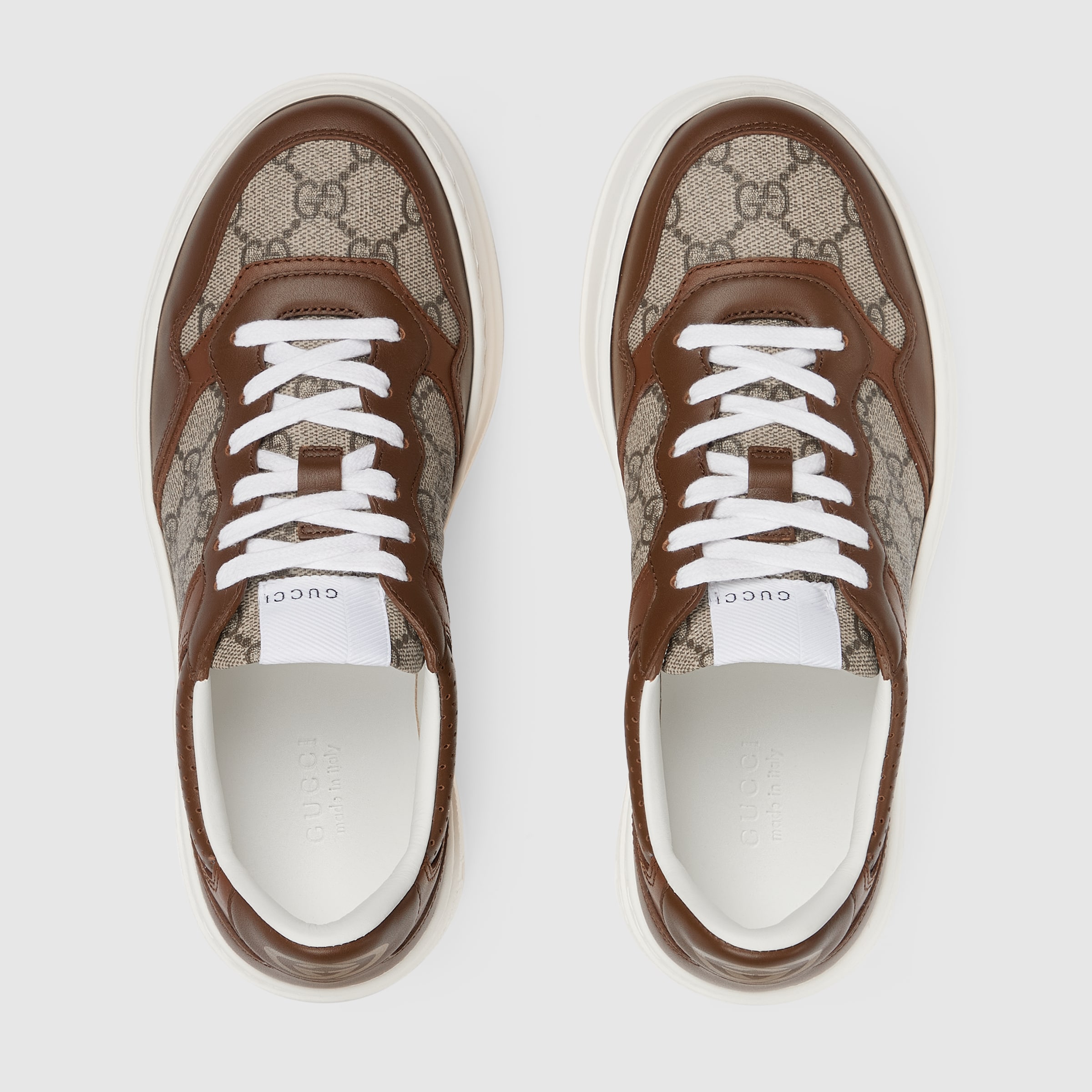First used in the 1970s, the GG logo was an evolution of the original Gucci rhombi design from the 1930s, and from then it’s been an established symbol of the House’s heritage. Here, the pattern defines this pair of trainers. Deepening the connection to the brands’ heritage, a printed Interlocking G logo appears at the back.