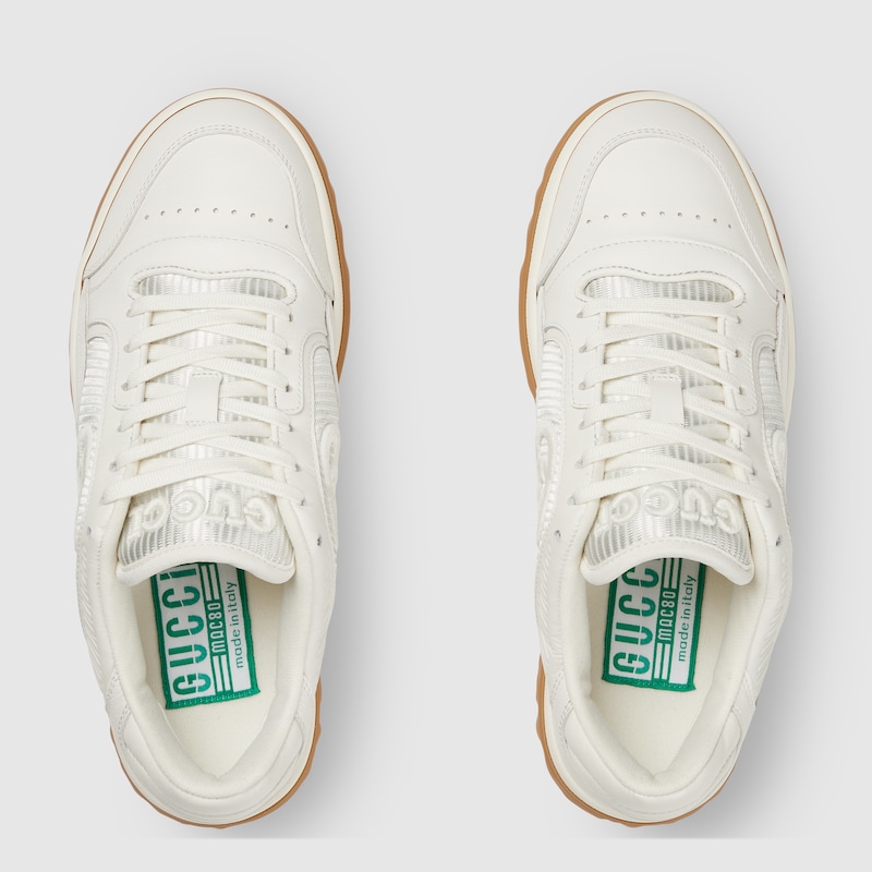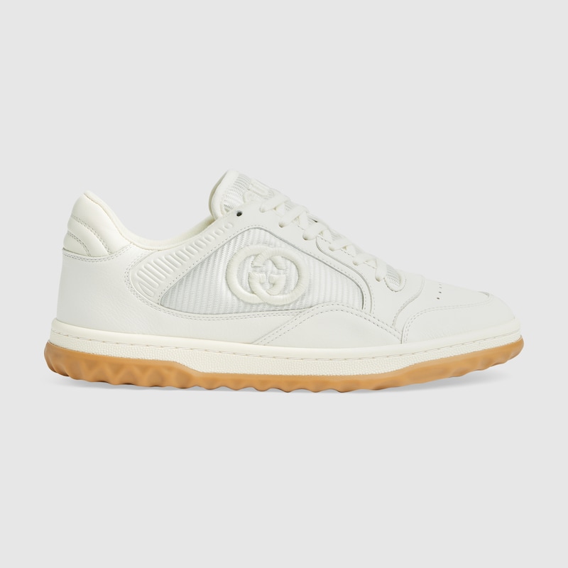 A discreet Interlocking G speaks to the subtle narrative that runs through the collection. Presented against off white leather, the motif brings the House logo to the fore in this retro-inspired trainer design.